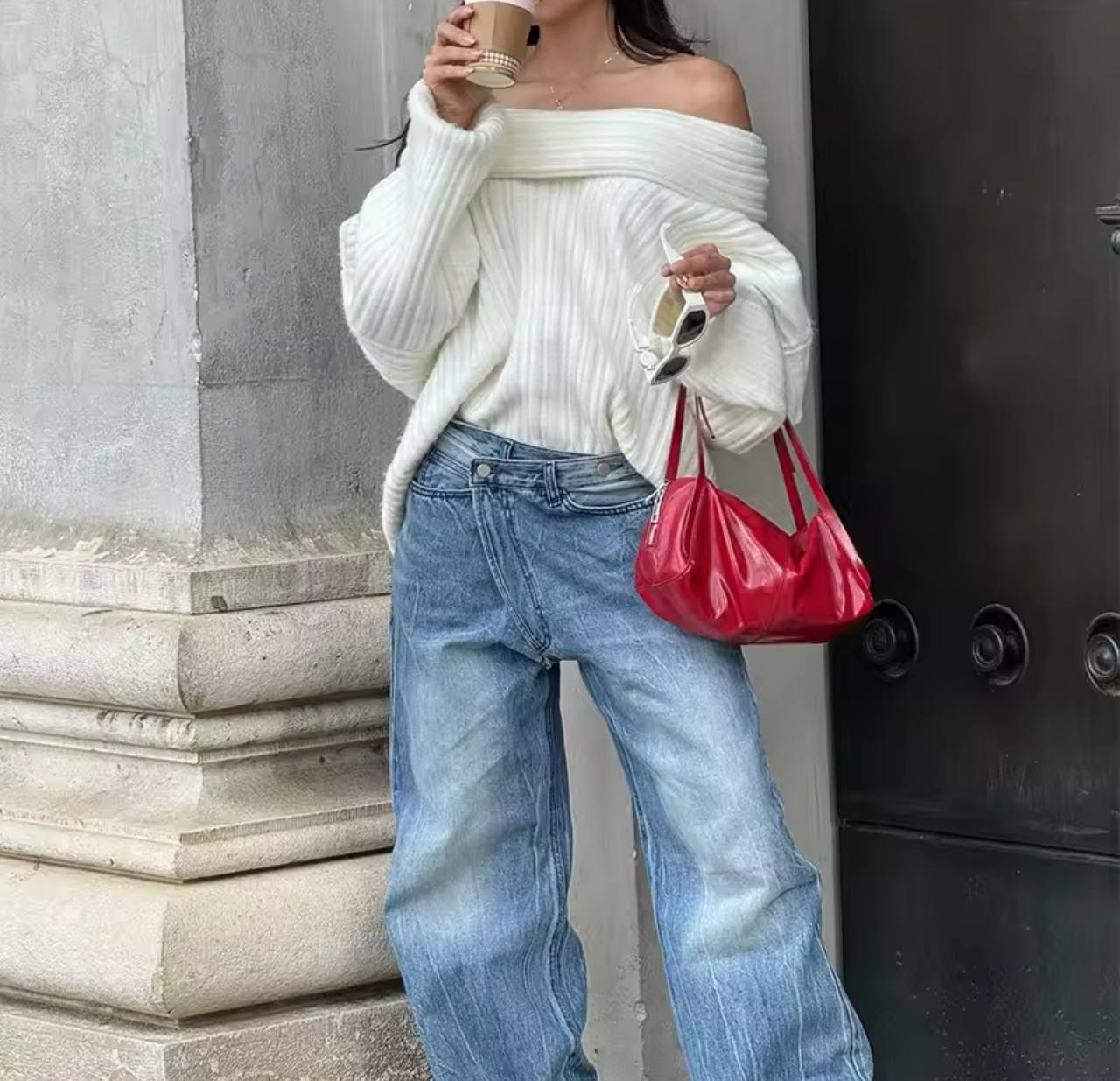 Turn heads with this stylish one-shoulder ribbed pullover! Featuring a sleek off-shoulder design and long sleeves, it's the perfect blend of cozy and sexy for your street-style looks.