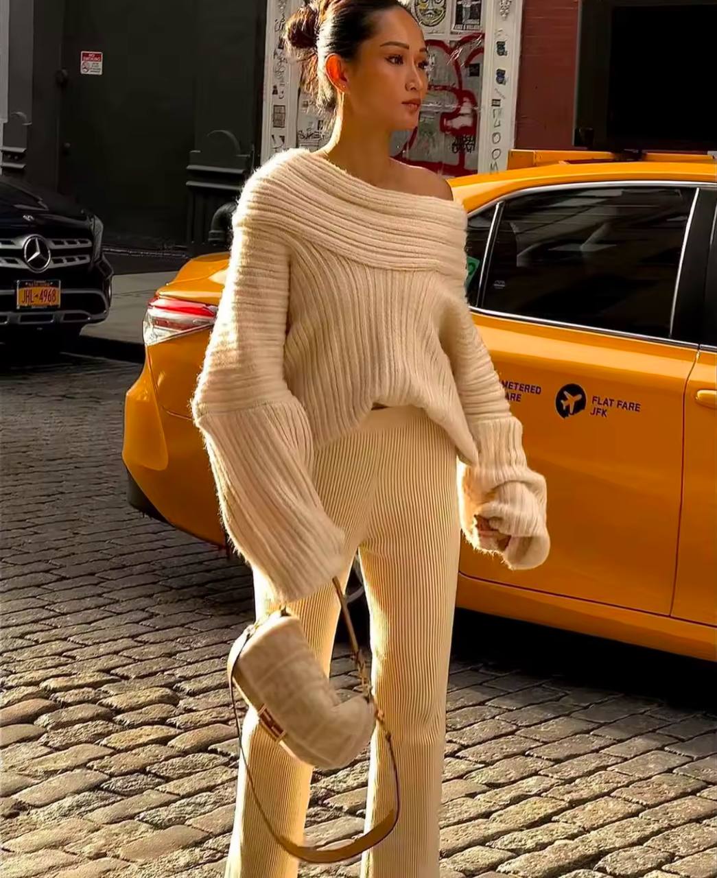 Women Sexy Solid One Neck Ribbed Sweater Fashion Off Shoulder Long Sleeve Knitted Pullover Lady Chic Street Knitwear